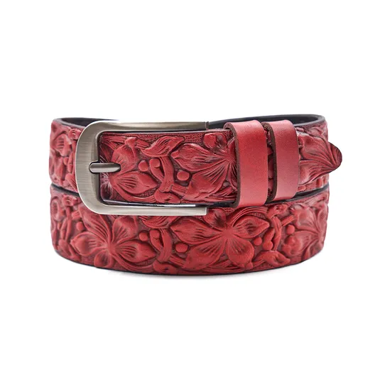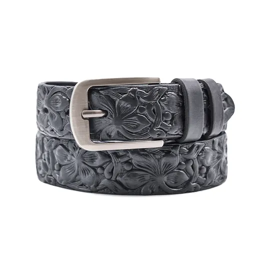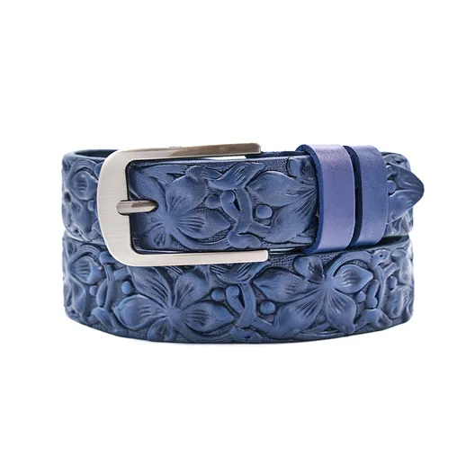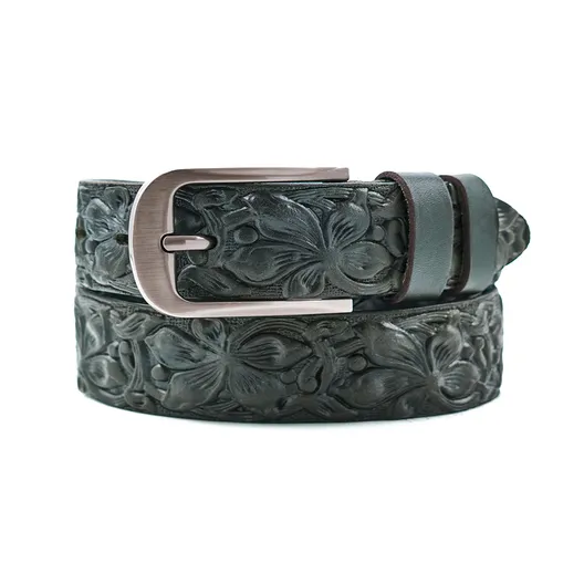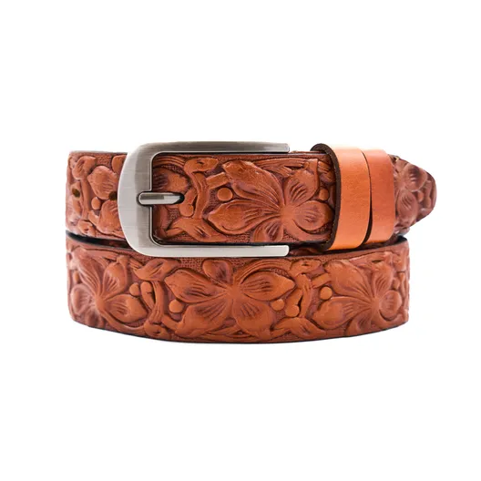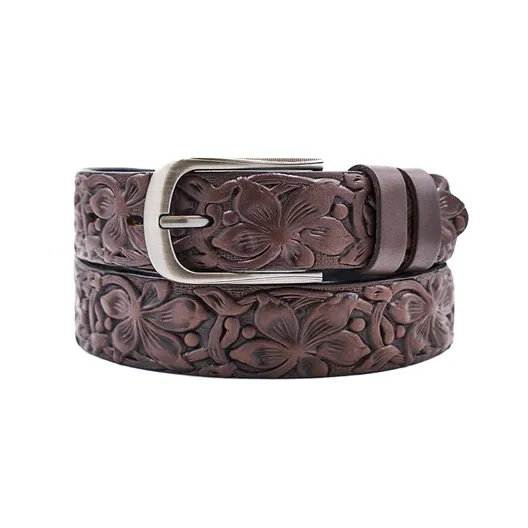 Женский ремень из натуральной кожи. Изделие отдавлено горячим тиснением 3D под "цветы".