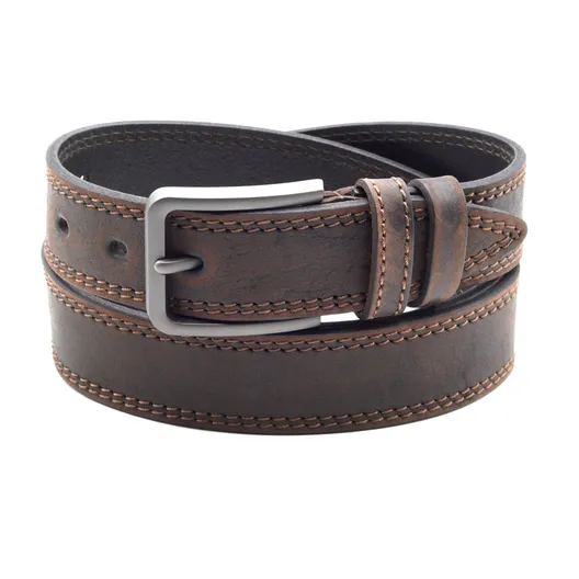 Мужской ремень из натуральной кожи НУБУК. Изделие прошито двойной декоративной строчкой.
