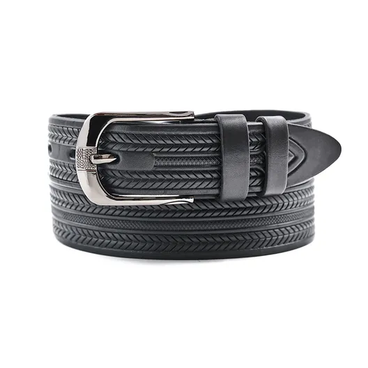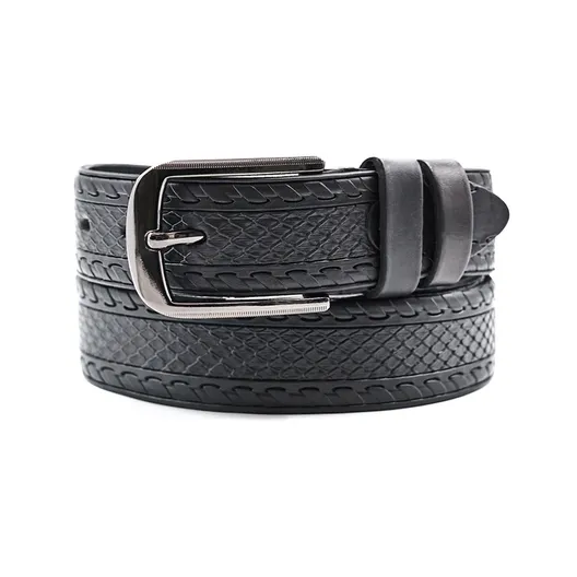 Мужской ремень из натуральной кожи с тиснением, ширина 40 мм