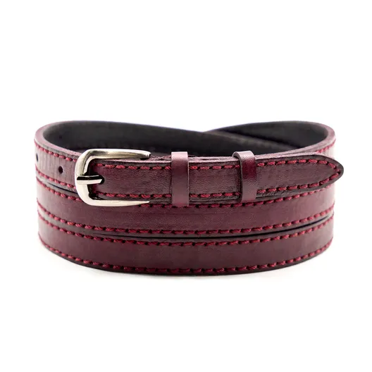 Женский ремень из натуральной кожи. Изделие прошито декоративной строчкой.