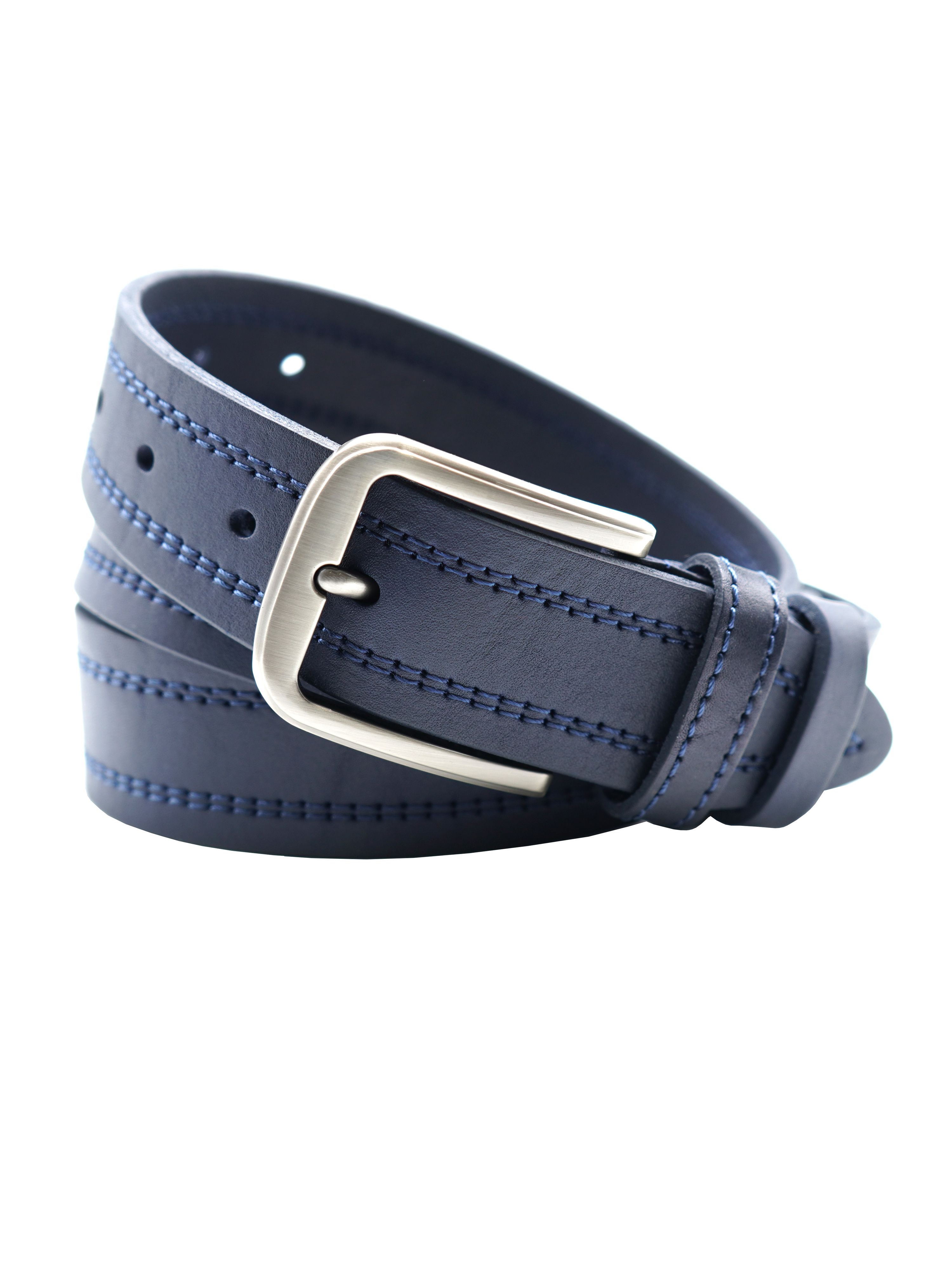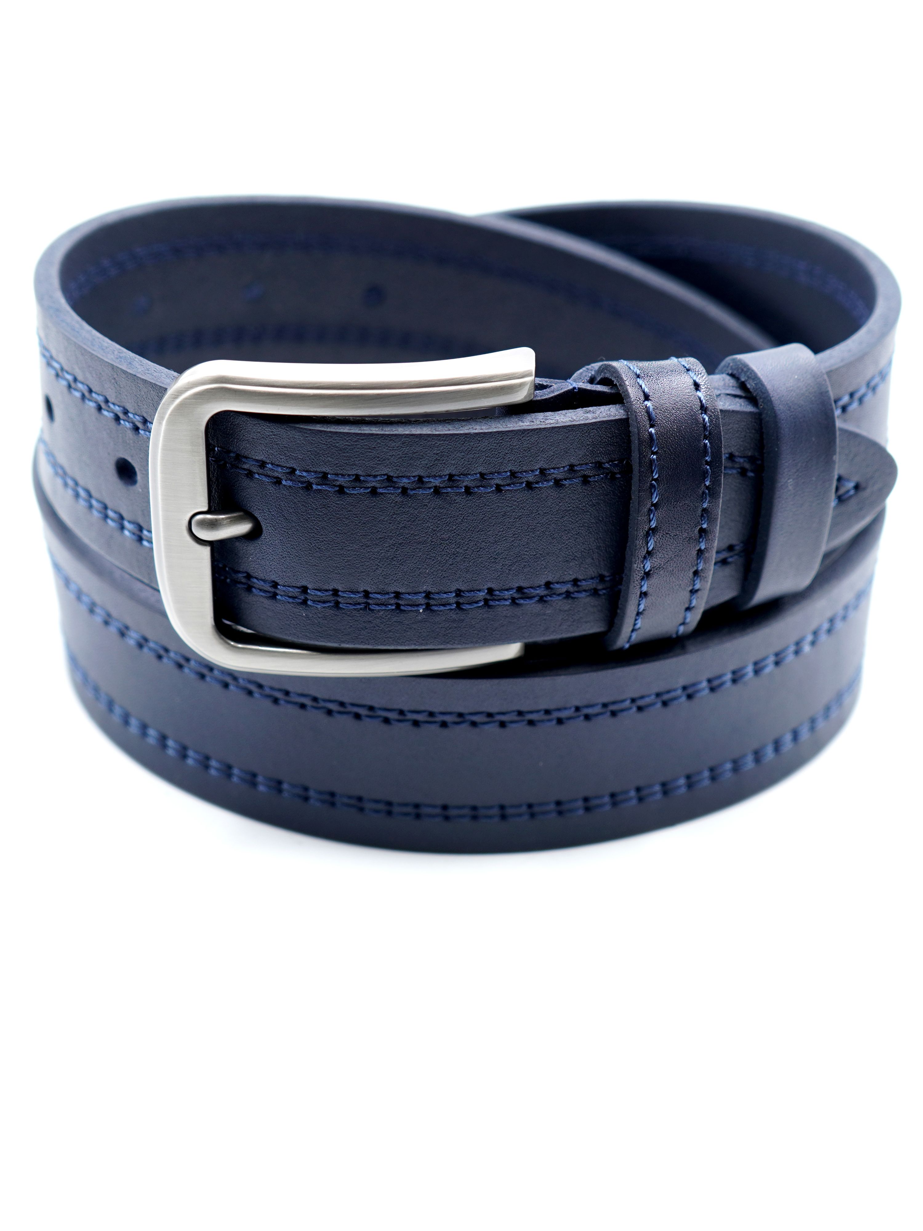 Мужской ремень из натуральной кожи для джинсов синего цвета, ширина 40 мм.