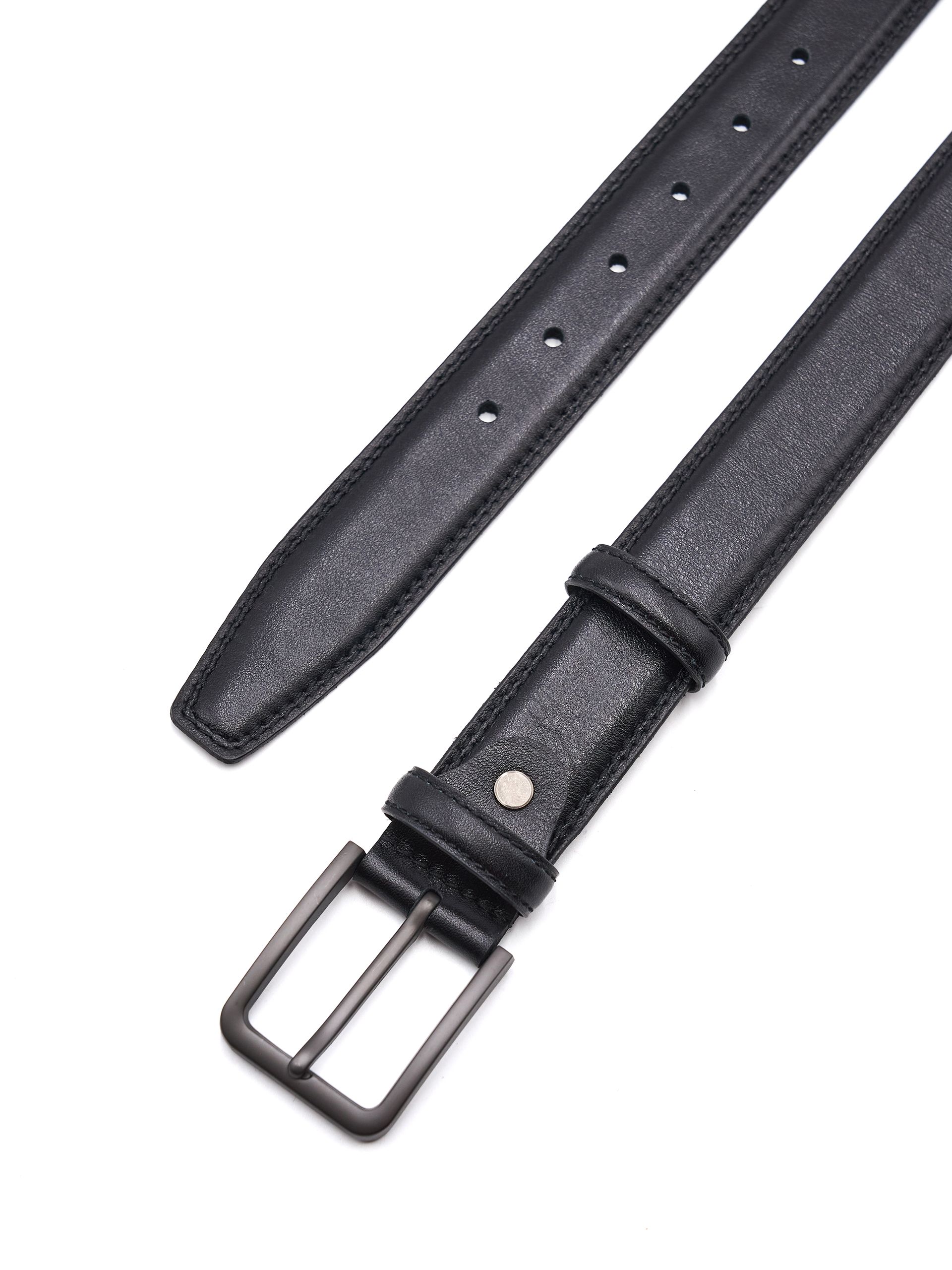 Мужской дутый ремень из натуральной кожи для брюк черного цвета, ширина 35 мм.