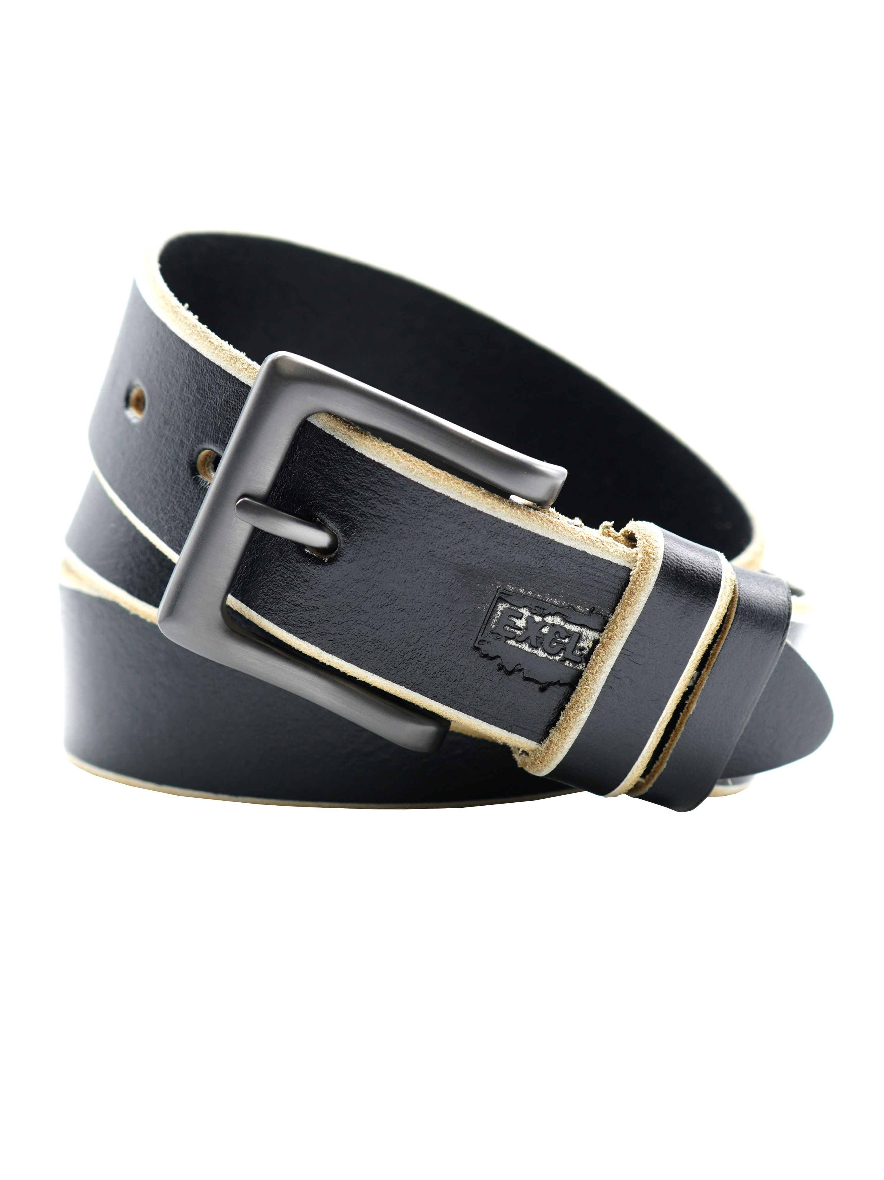 Мужской ремень из натуральной кожи черного цвета, ширина 40 мм.