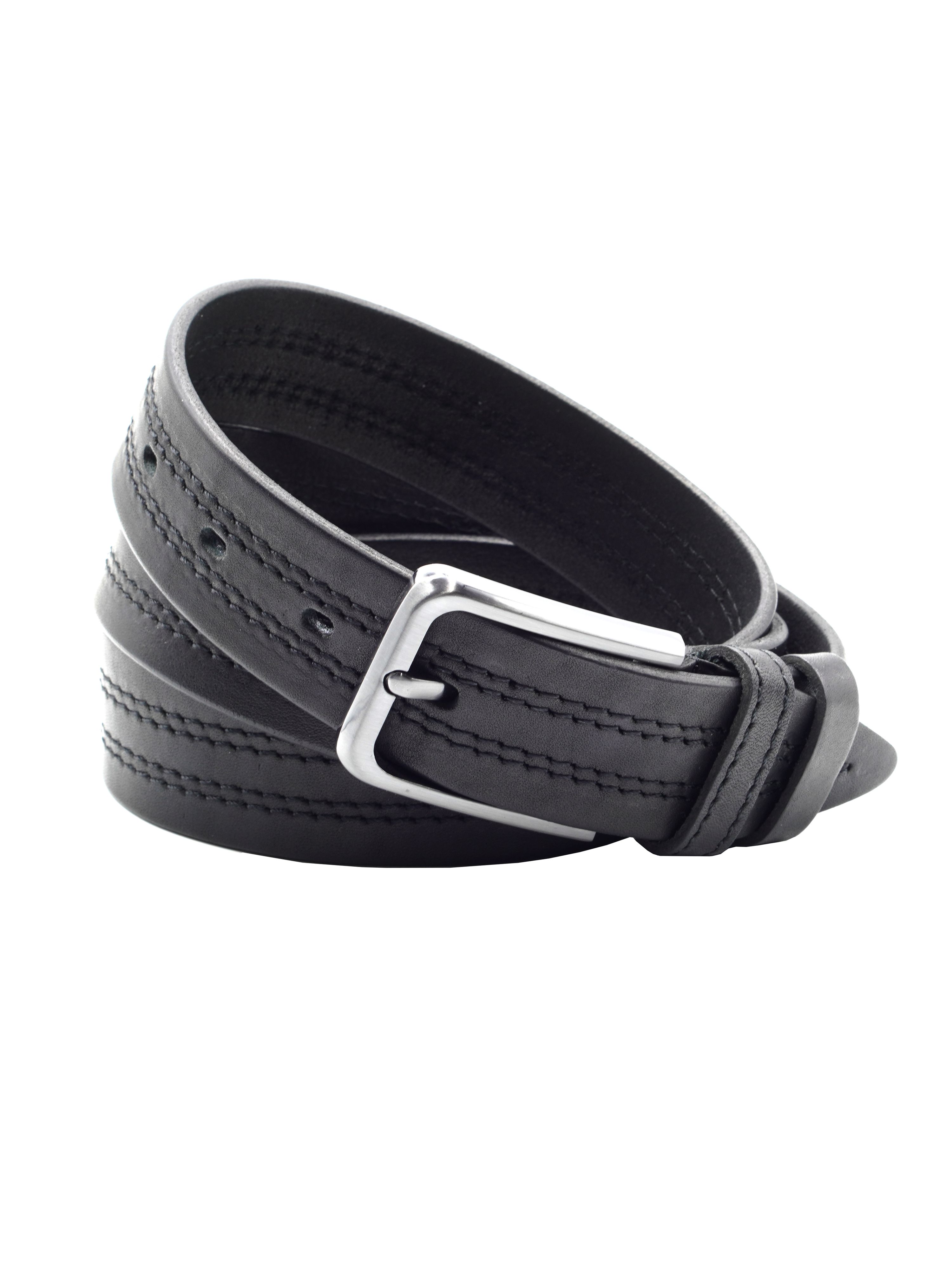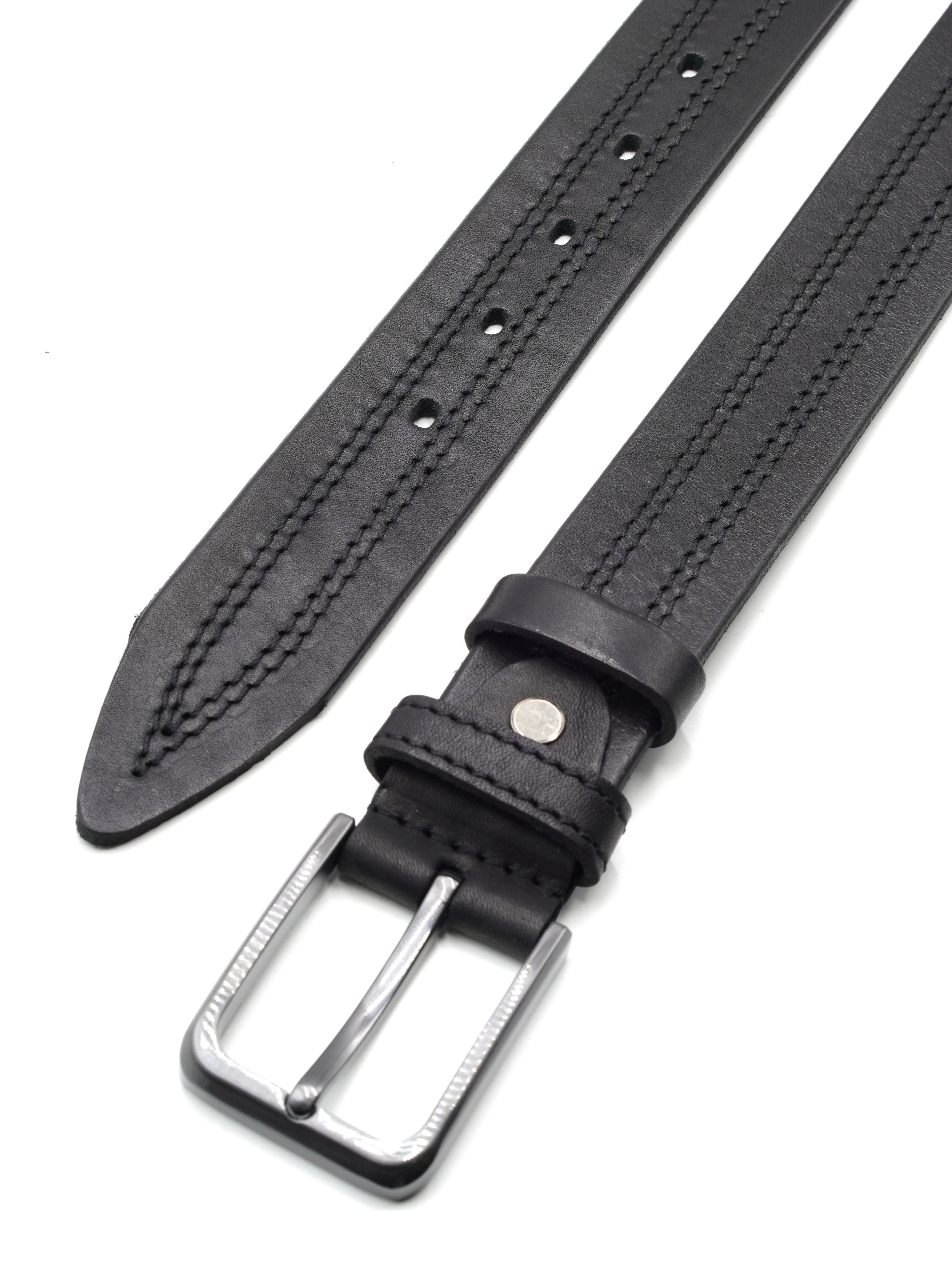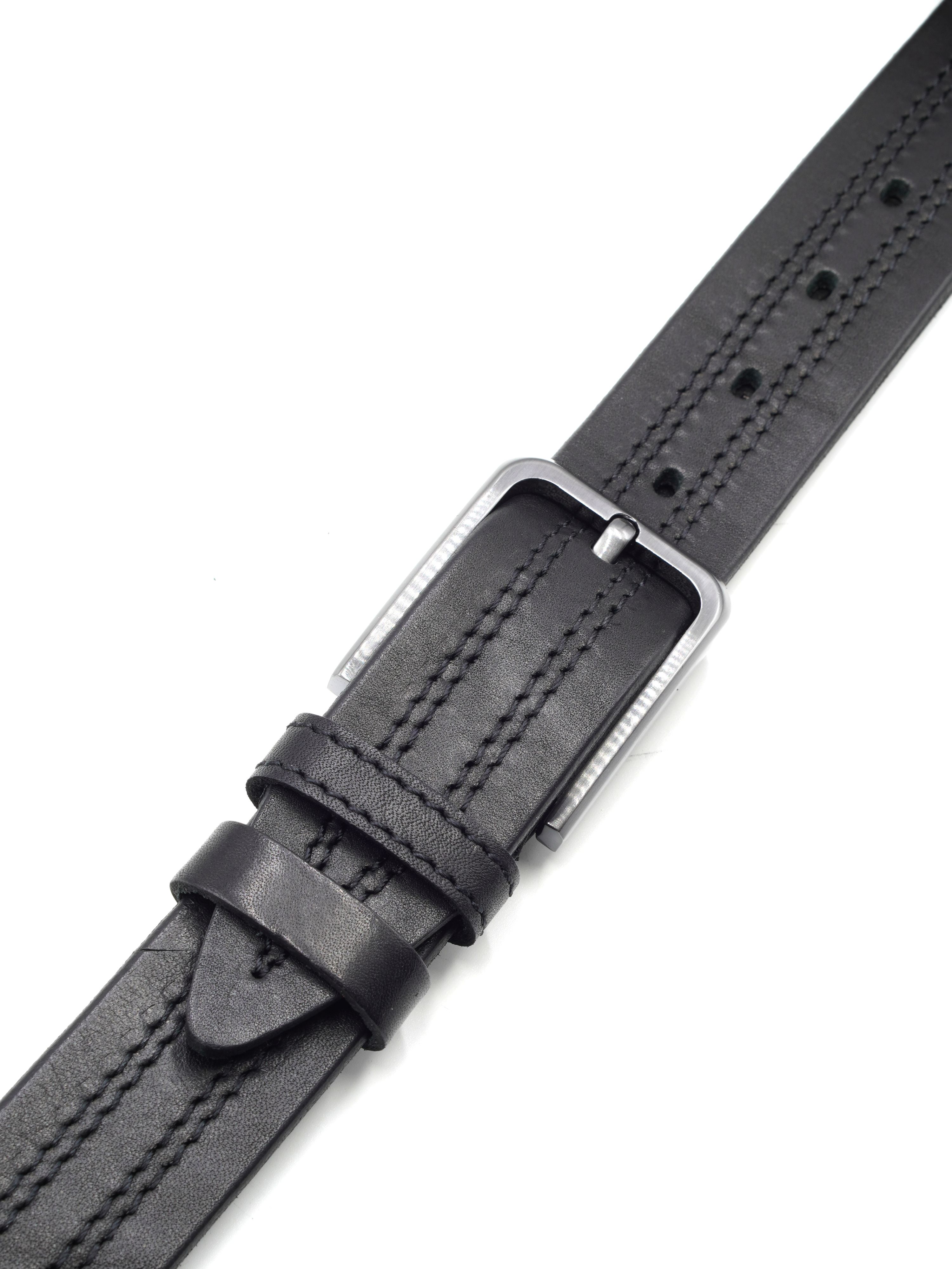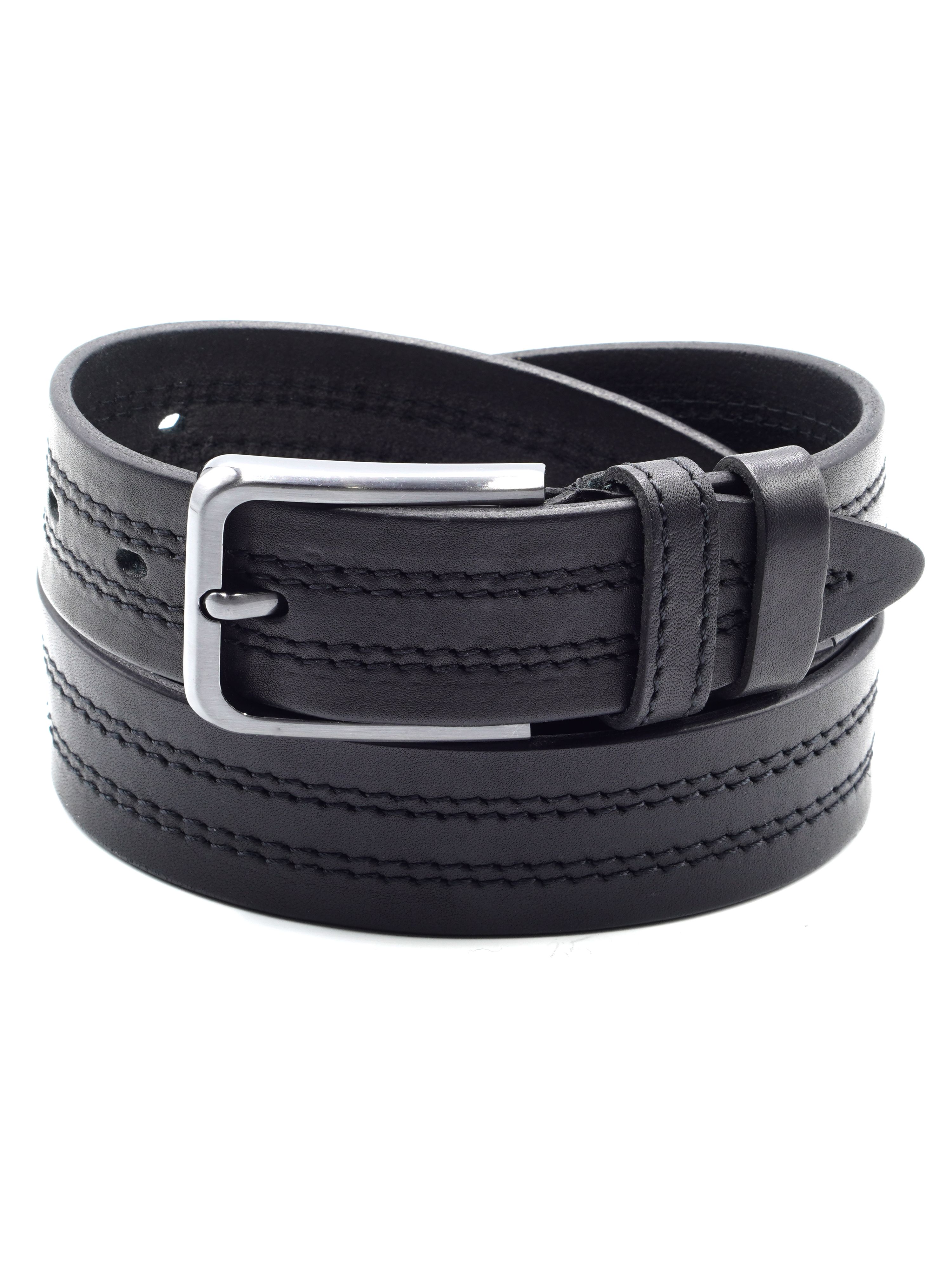 Мужской ремень из натуральной кожи для брюк черного цвета, ширина 35 мм.