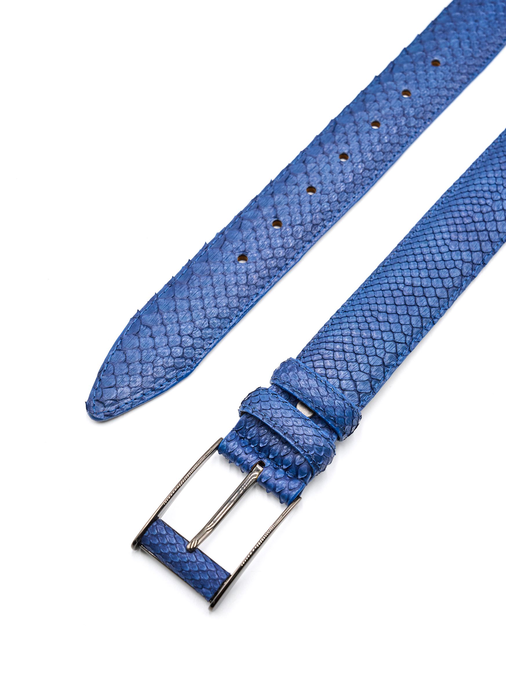 Мужской ремень из кожи питона синего цвета для джинсов, ширина 38 мм.