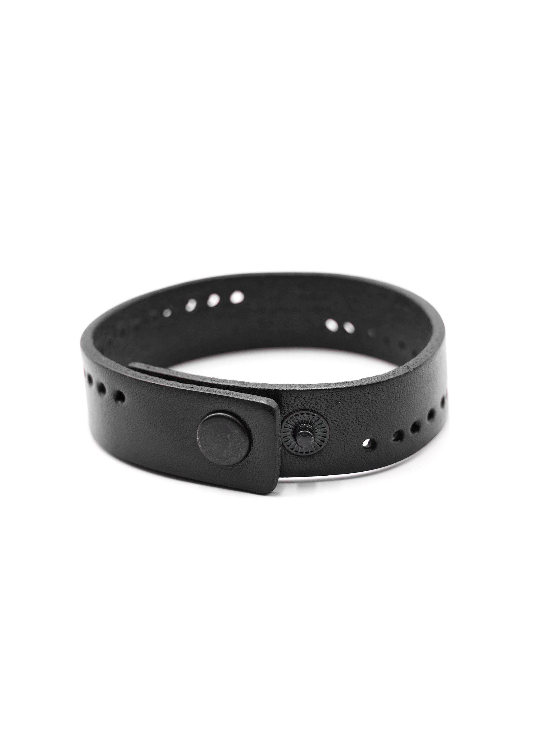 Браслет с перфорацией из натуральной кожи черного цвета. Для мужчин и женщин