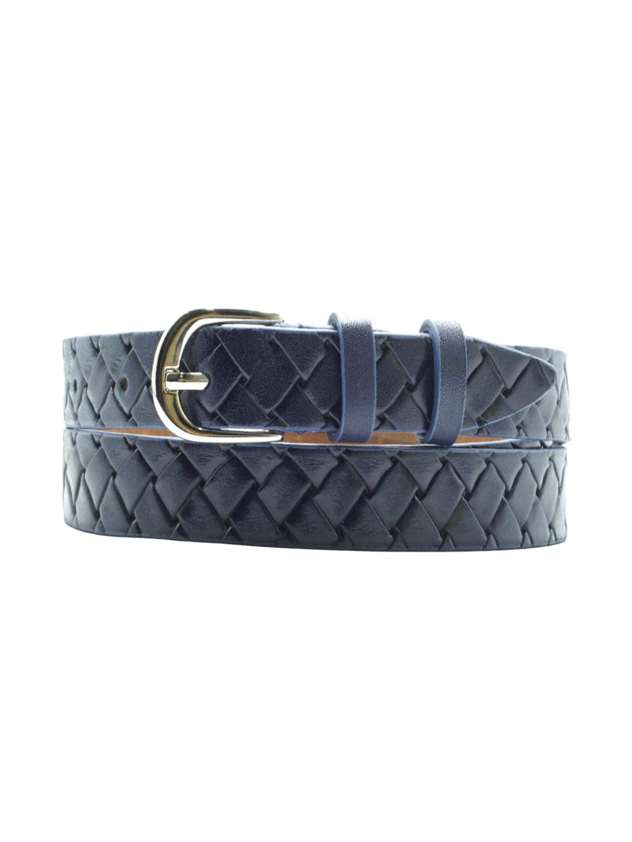 Женский ремень из натуральной кожи для брюк синего цвета, ширина 20 мм.